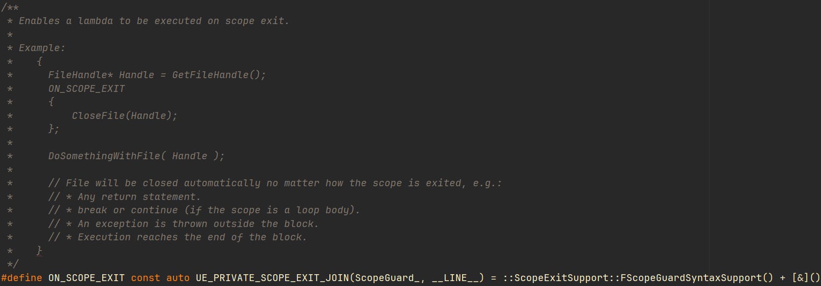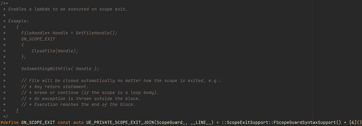 Some modern programming languages like Odin or Go implement a feature called deferred code execution. C++ is not one of them. Luckily, Unreal Engine has it's own solution to this.