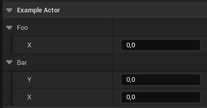 Using a struct as a data source that is exposed to the editor (meaning its UPROPERTY) has one major drawback. It cannot be a pointer. This means that you can use this and only this specific struct type as your data source, you cannot pick which child class would you like to use. This is where instanced objects shine. They create an instance of an object inlined, allowing to modify its data, achieving same behavior as structs. The extra though comes from the fact that we can create multiple subclasses of the main object class and pick between them in the editor. Let's have a look at the examples. First, let's take a look at struct.