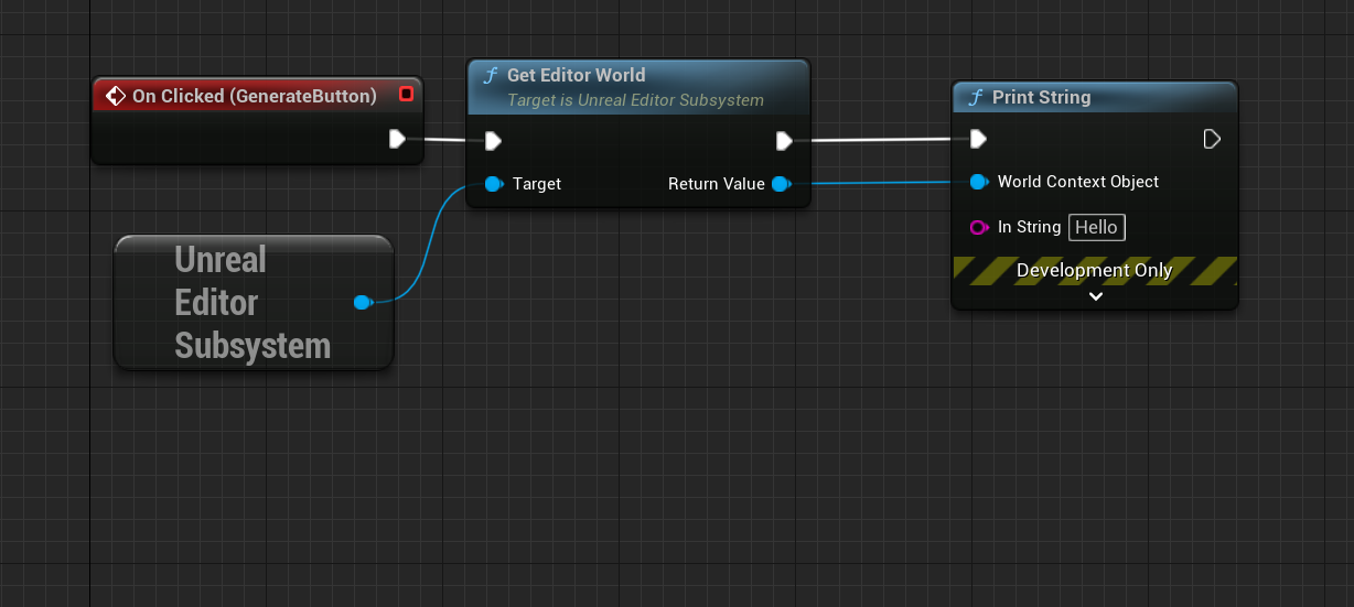 There is a lot of functions that require a valid reference to a WorldContextObject. These functions use this object to access world reference. Unfortunately the editor utility widget doesn't have such object so it cannot use these functions out of the box. You can notice that functions as simple as `Print String` require you to pass world context object. Luckily there exist `Unreal Editor Subsystem`. We can use it to fetch both editor world or game world. Both of these functions return valid references that can then be passed to all functions requiring world context object. See an example below.